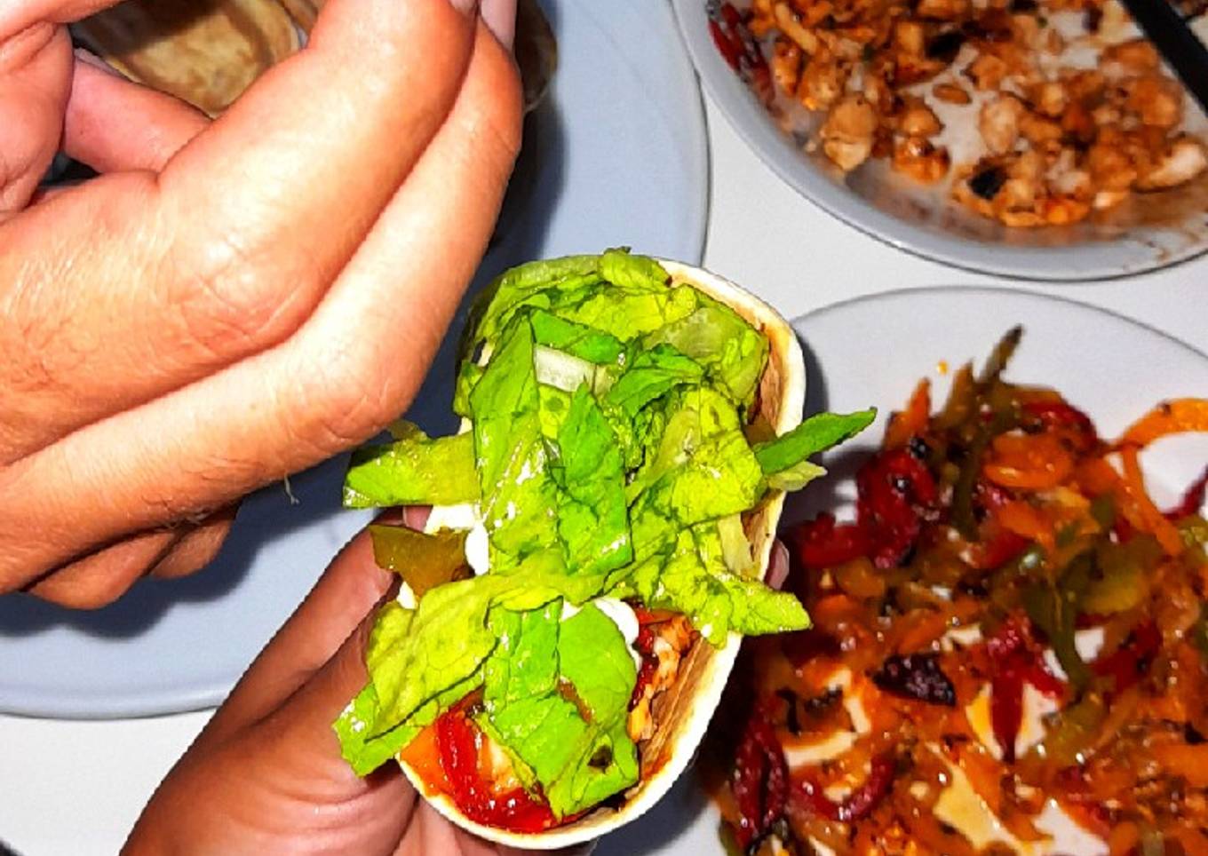 - Sacamos las fajitas o barquitos y en el horno los doramos 5 minutos, sacamos y rellenamos al gusto.