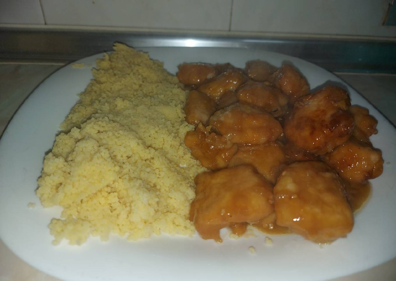 Pollo a la miel con cous cous a mi manera