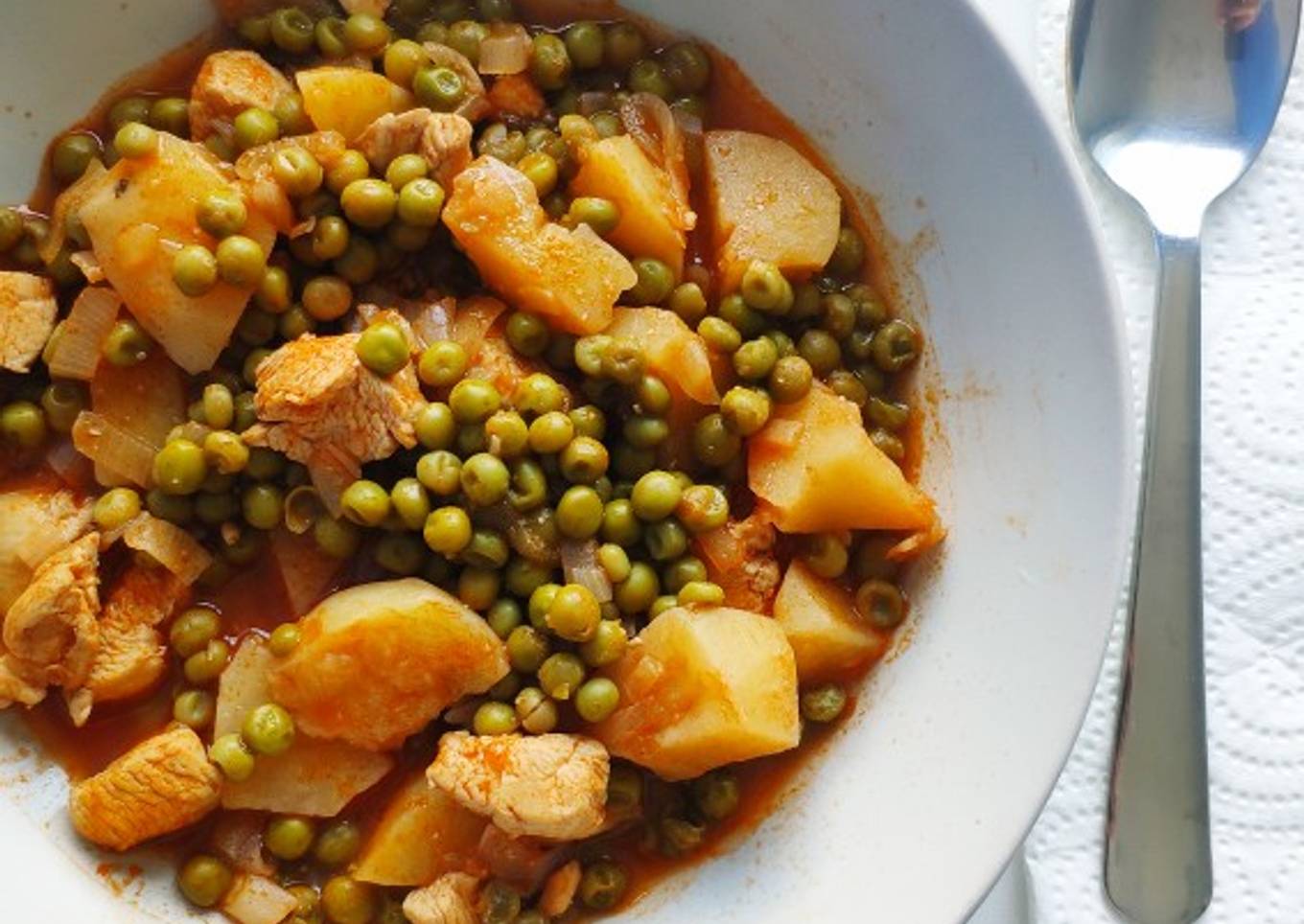 Guisantes con patatas y pollo