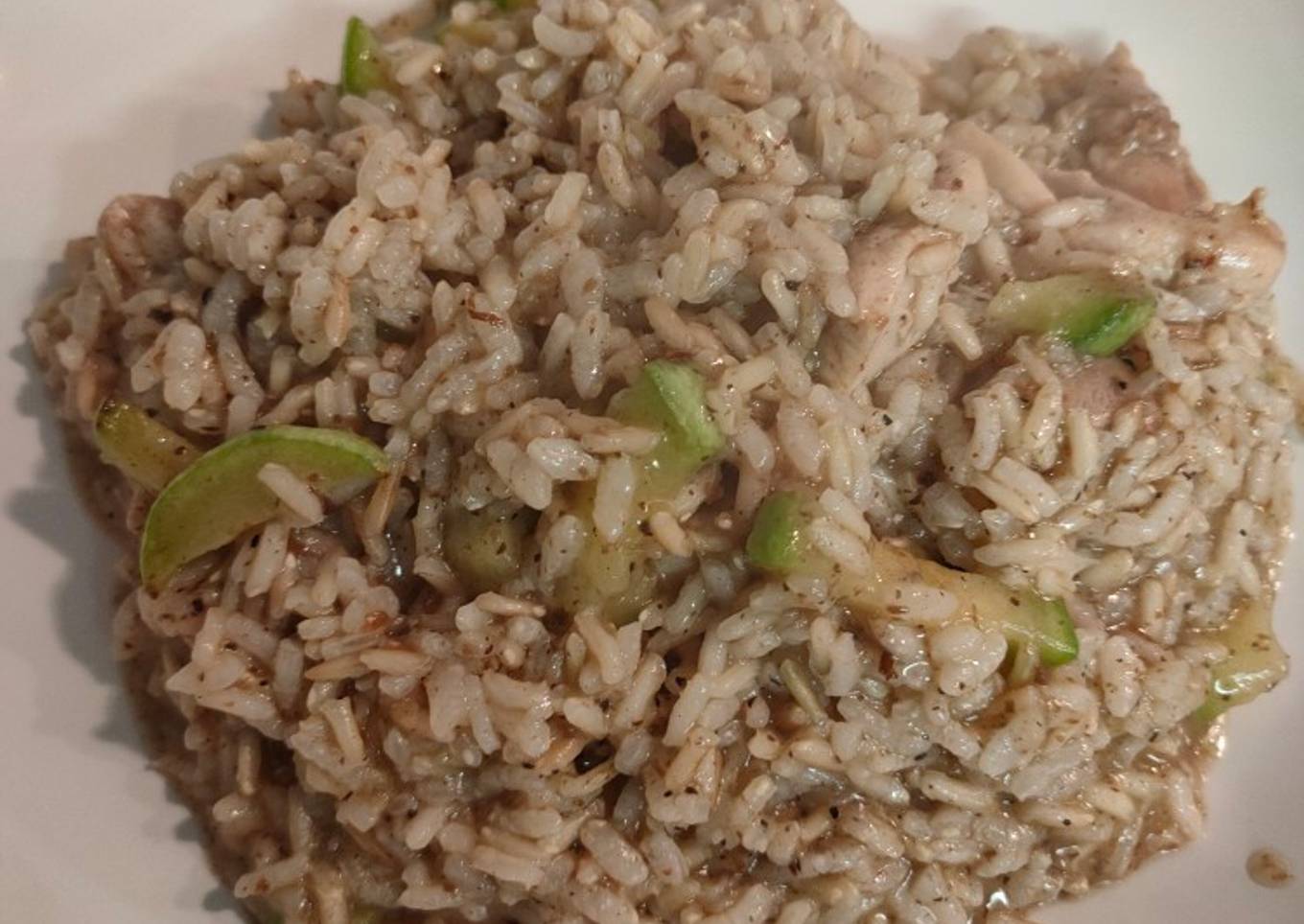 Arroz meloso con trufa, pollo y calabacín