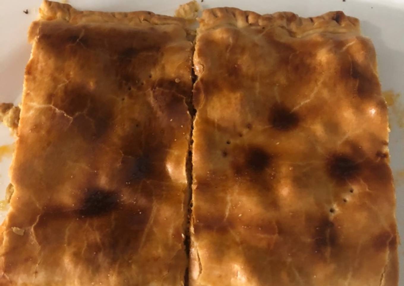- Ponemos la tapadera de la masa y con un tenedor sellamos bien los bordes. Con un pincel pintamos la empanada con huevo batido y lo metemos al horno a 200° durante unos 20 minutos. ¡Listo!