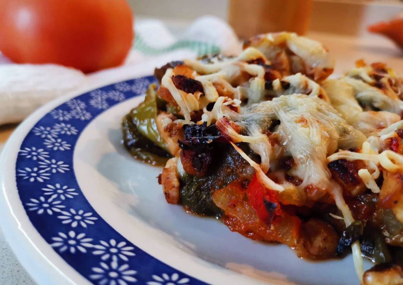 - Le añadimos la salsa por encima, el resto de carne sobrante, le ponemos queso y al horno. 💃🏻🧀