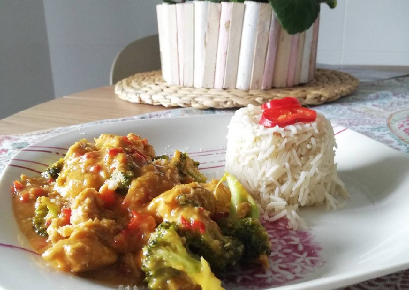 - Una vez tengamos todo hecho, emplatamos! A mí me gusta acompañarlo con arroz basmati y un poco de pimiento rojo crudo pero esto ya va al gusto!