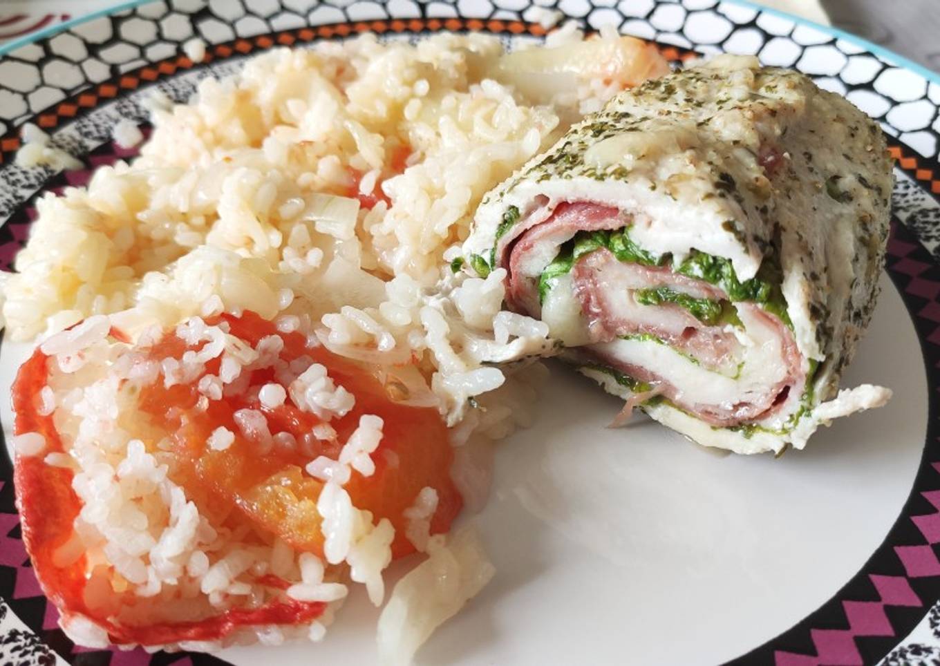 Rollo de pollo con jam贸n y queso 馃オ馃崡馃馃