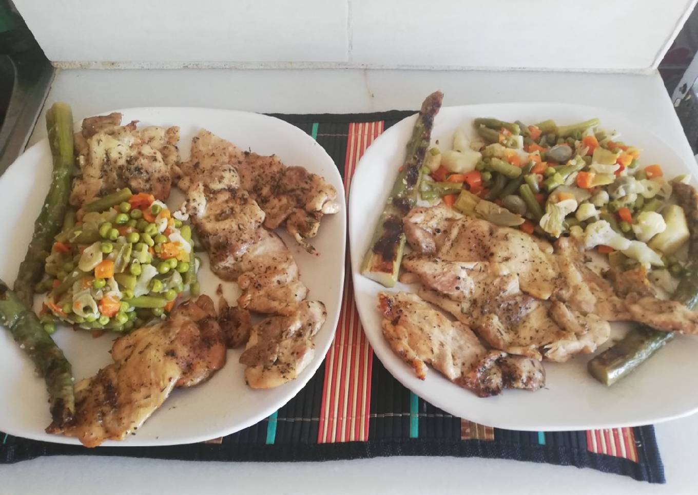 Instructions to make to make Churrascos de pollo asados al horno y salteado de verduras