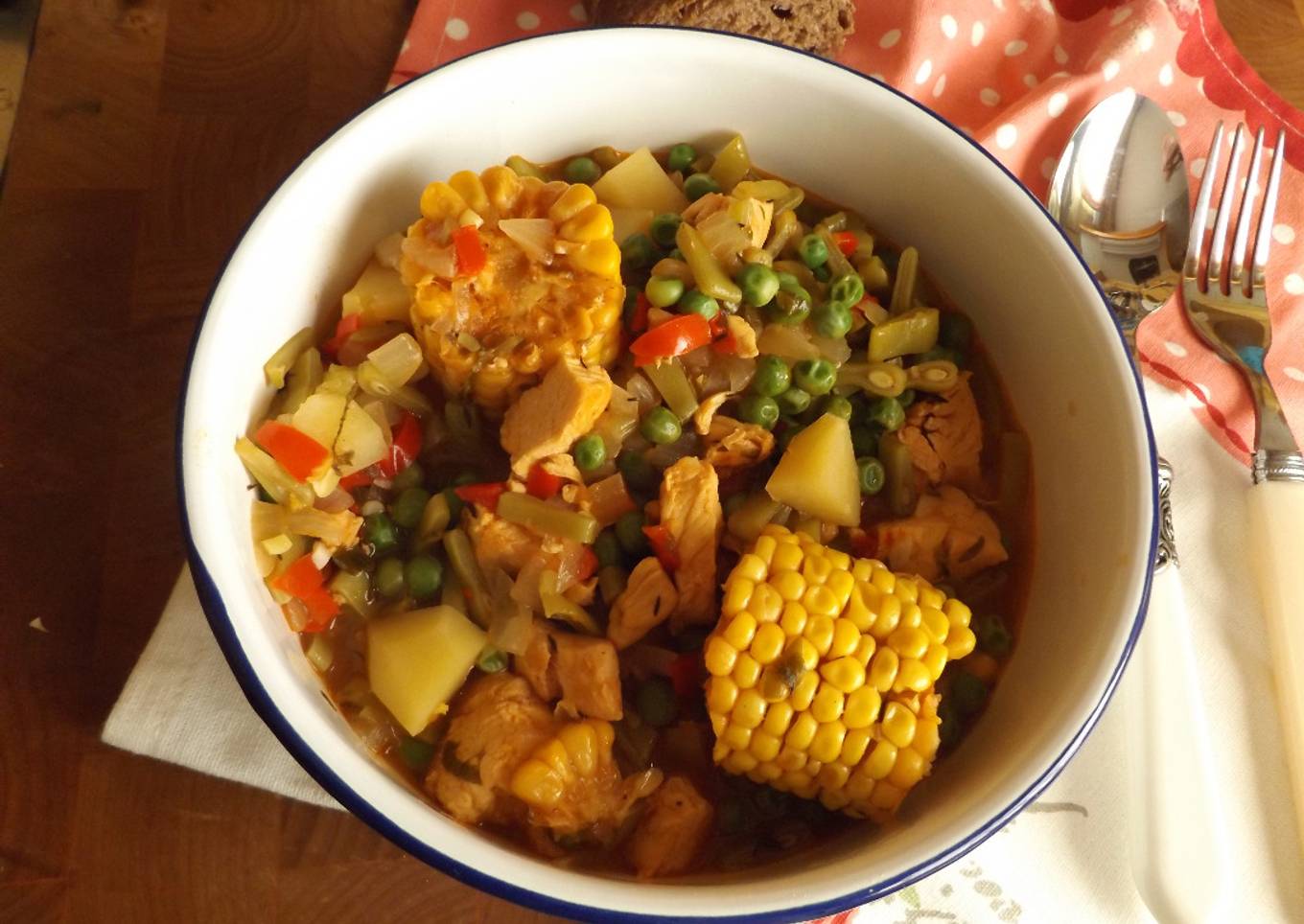 Hello everybody, it's Brad, welcome to my recipe page. Today, I will show you a way to prepare a special dish, Guiso de invierno de pollo con maíz y hortalizas. One of my favorites. This time, I'm gonna make it a bit tasty. This is gonna smell and look delicious.
