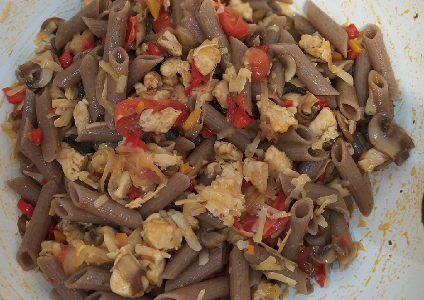 Macarrones de trigo de sarraceno con pollo y verduras