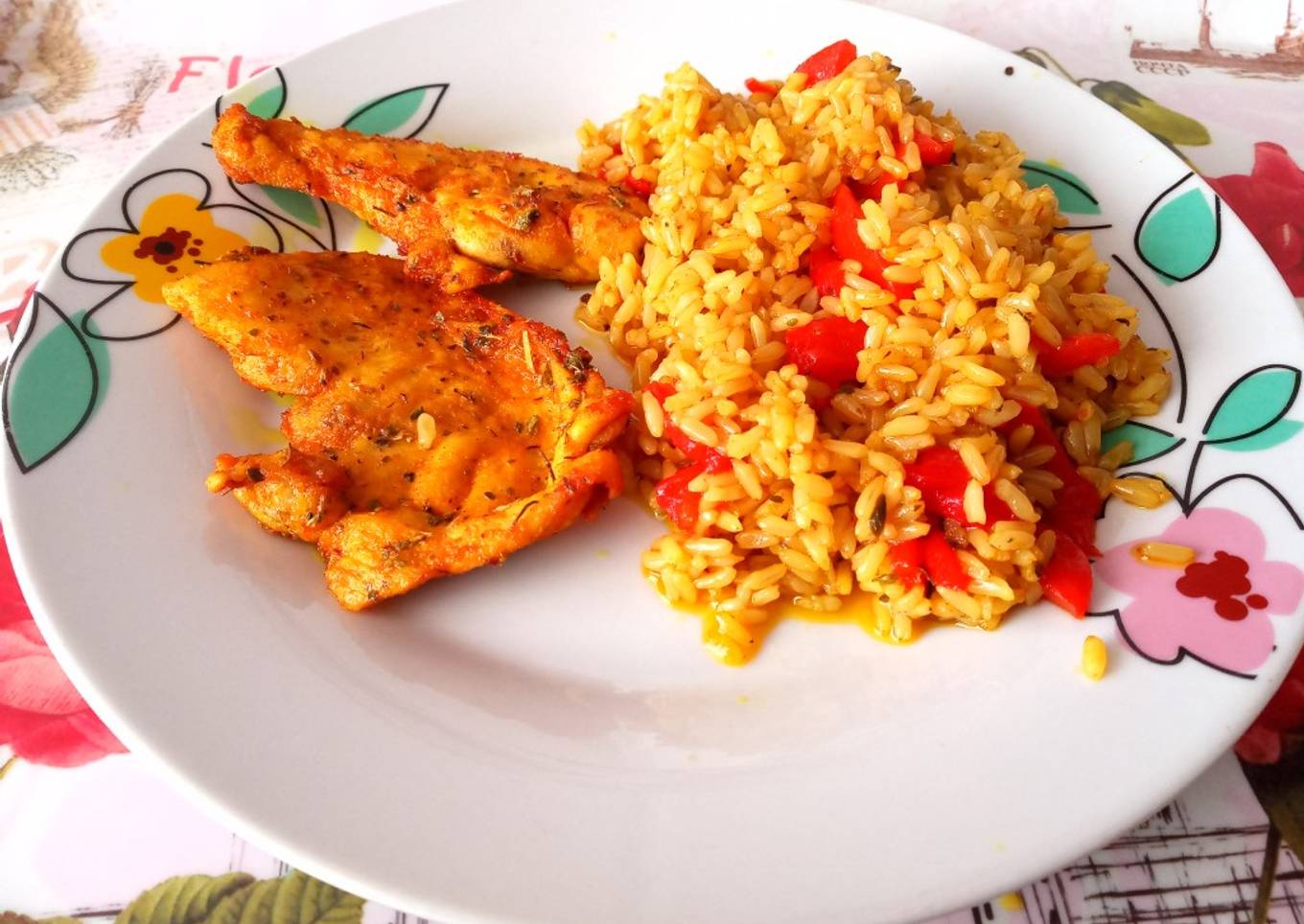 Instructions to make to make Pollo a la cúrcuma con arroz y pimiento