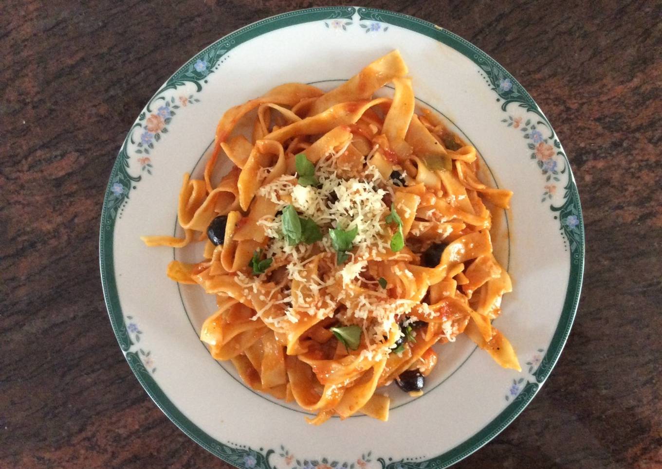 Tallarines con pollo y parmesano
