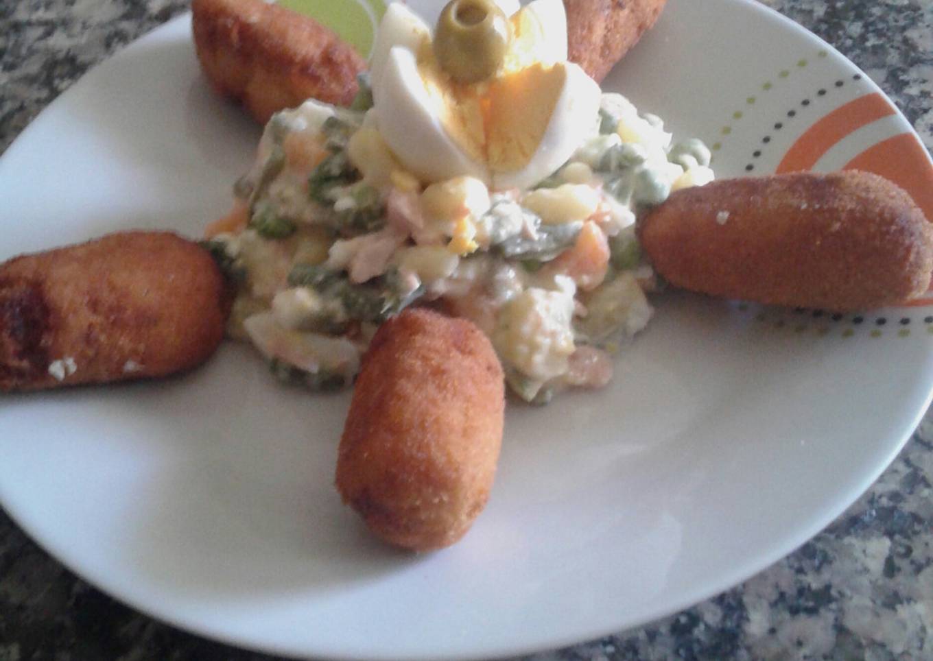 Instructions to make to make Croquetas de pollo con ensaladilla