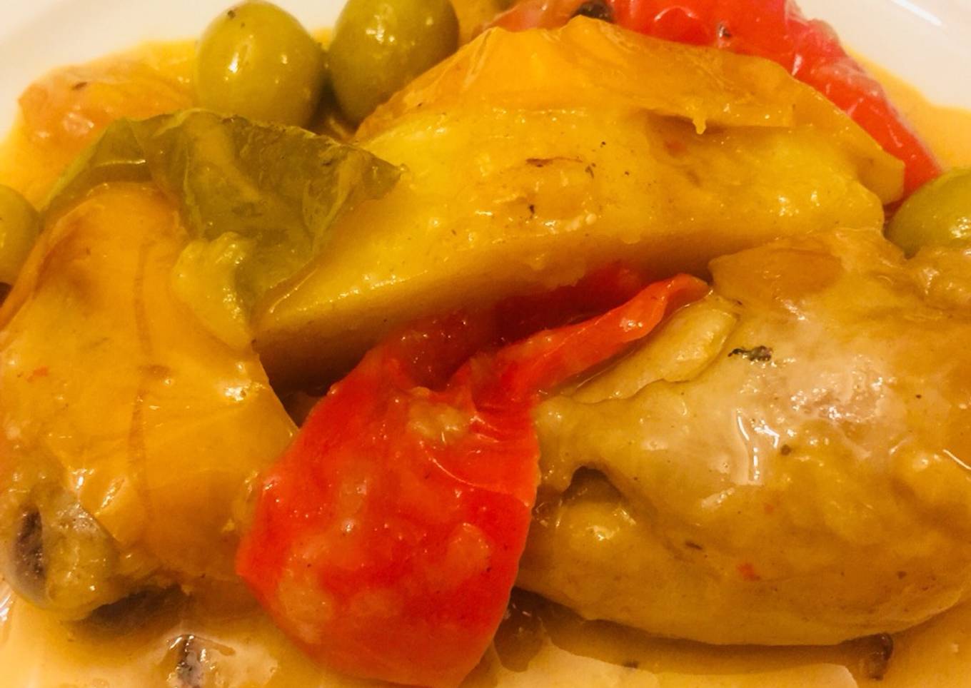Hello everybody, it is Drew, welcome to my recipe page. Today, I'm gonna show you how to prepare a special dish, Pollo con verduras y aceitunas. One of my favorites. For mine, I'm gonna make it a bit unique. This is gonna smell and look delicious.