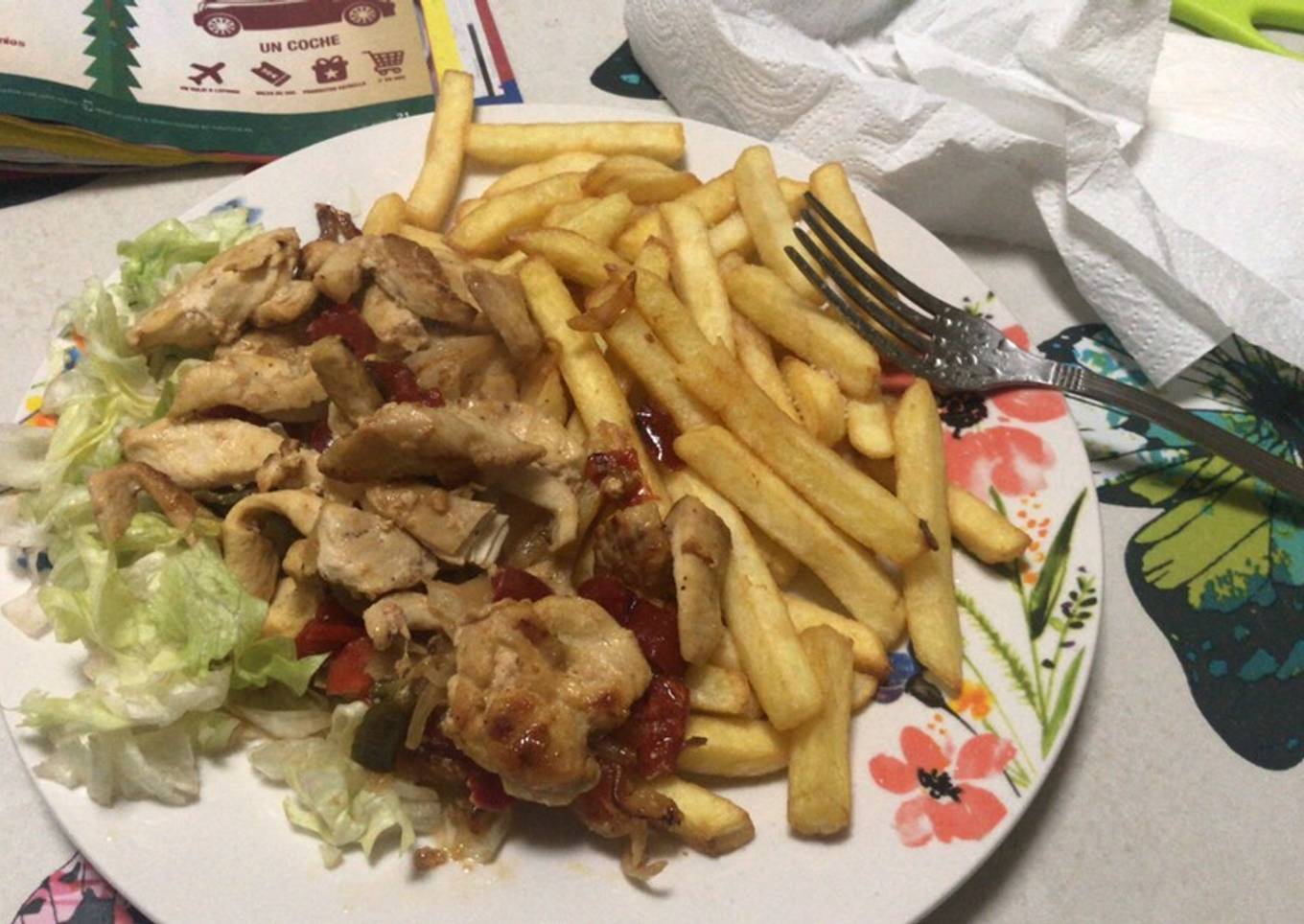 - Freímos patatas y listo. Ponemos en el plato el pollo, las patatas y la lechuga y listo para comer! Riquísimo