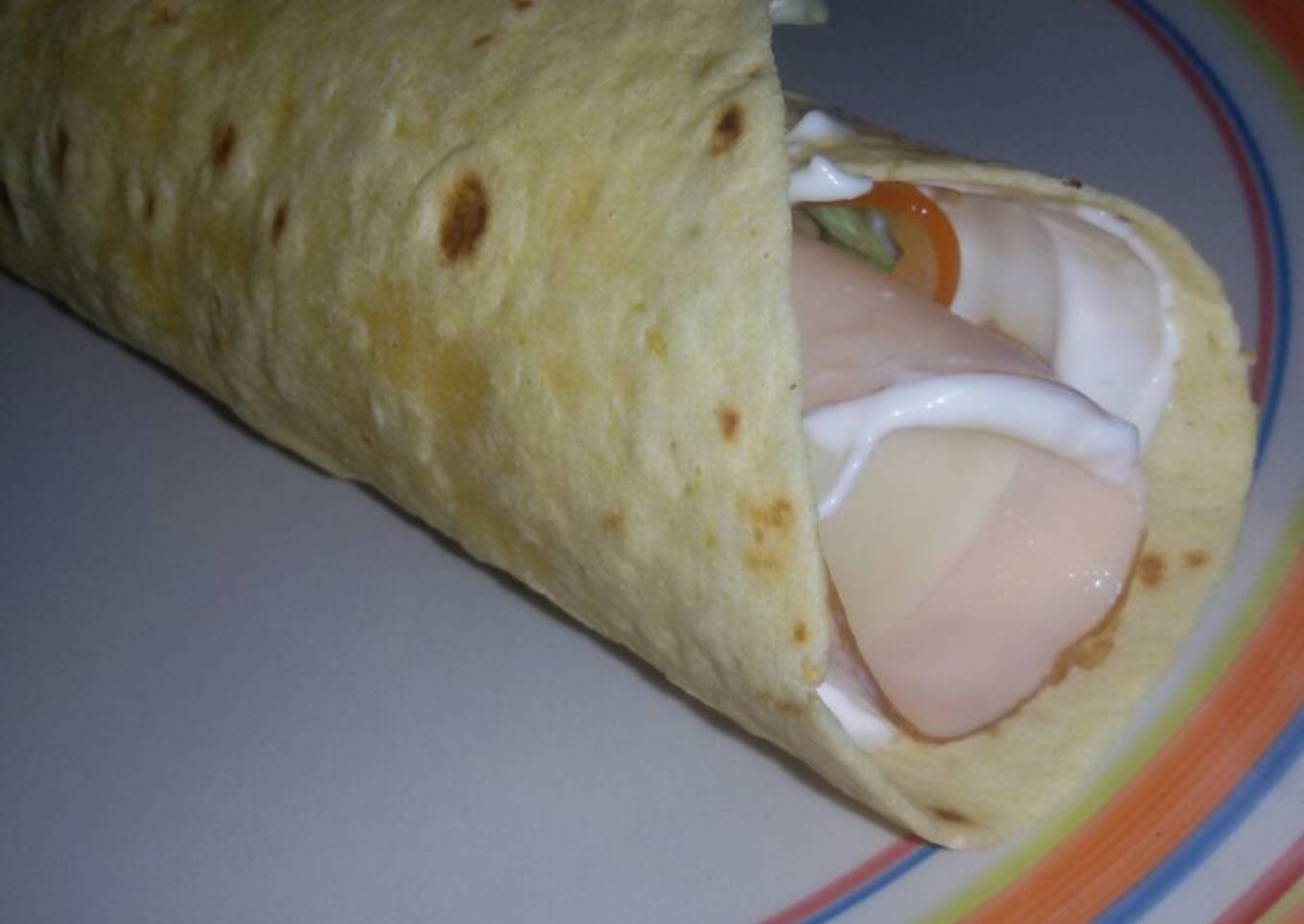 - En una tortilla untamos mahonesa, ponemos lechuga, tomate y espolvoreamos cebolla frita.