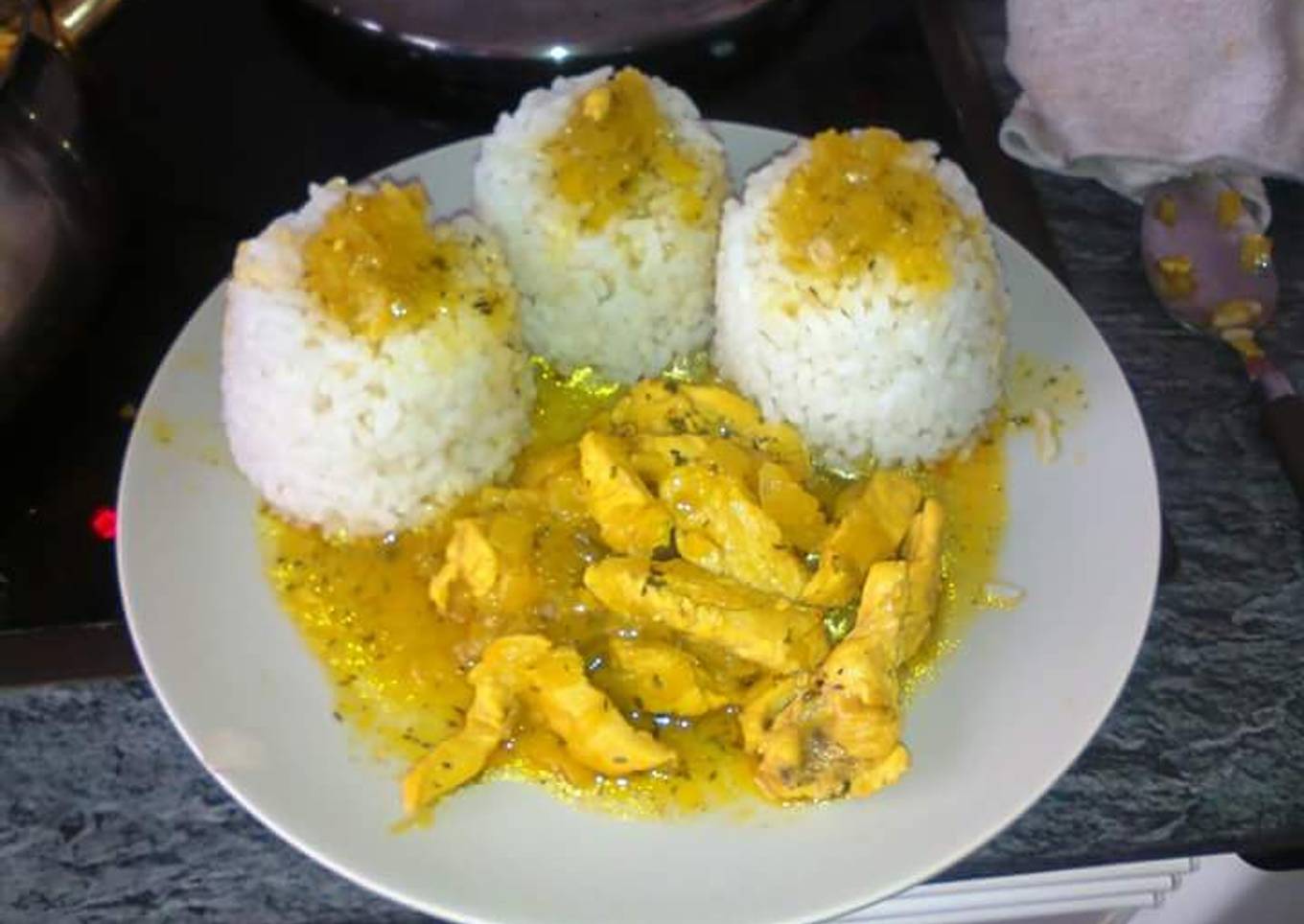 Hey everyone, hope you're having an incredible day today. Today, we're going to make a special dish, Pollo con curry y especias con arroz. It is one of my favorites food recipes. For mine, I'm gonna make it a bit tasty. This will be really delicious.