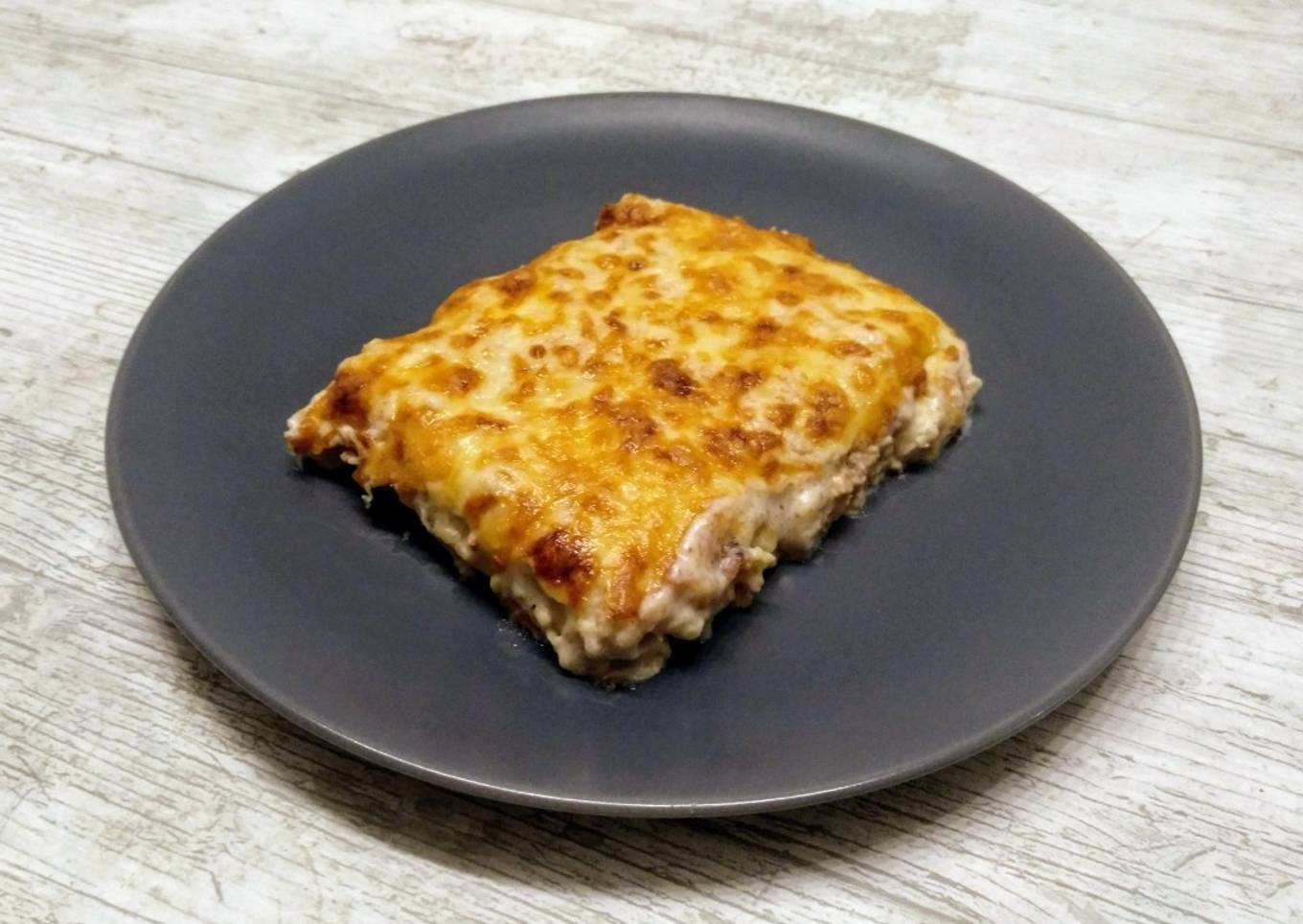 - Añadir uno o dos cucharones de bechamel al rustido picado que habíamos reservado en el bol. El resto de la bechamel lo guardamos para más adelante.